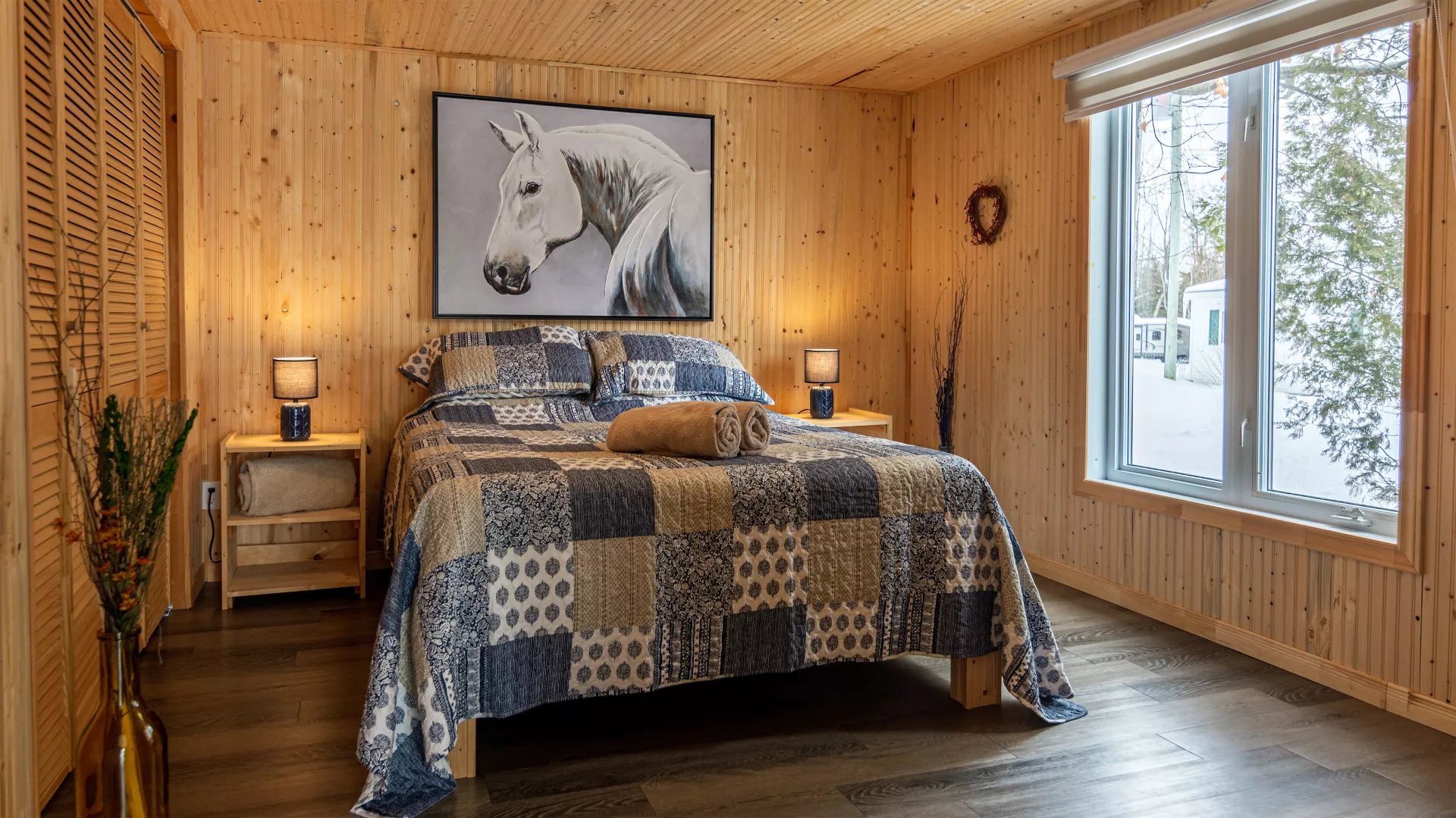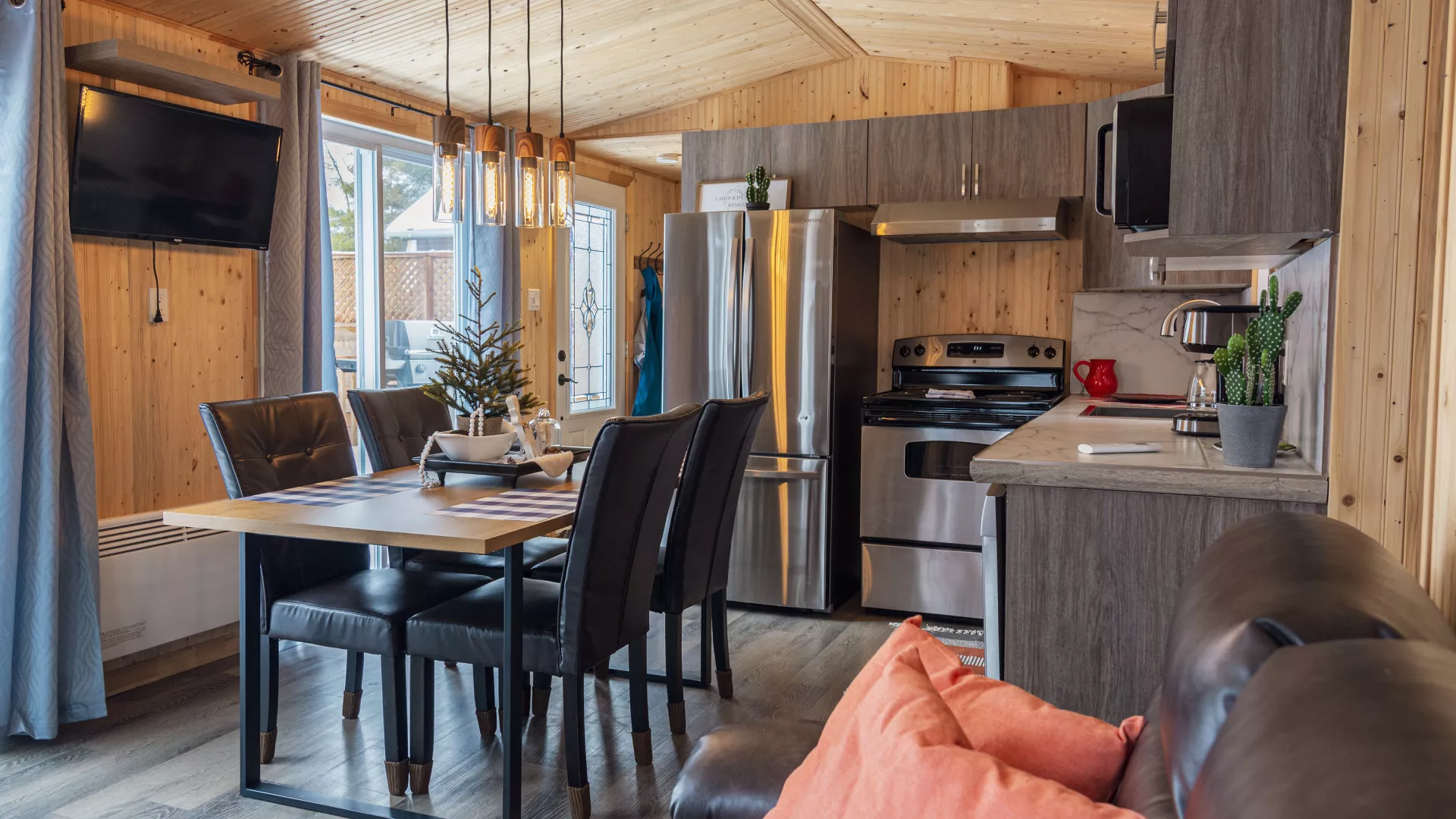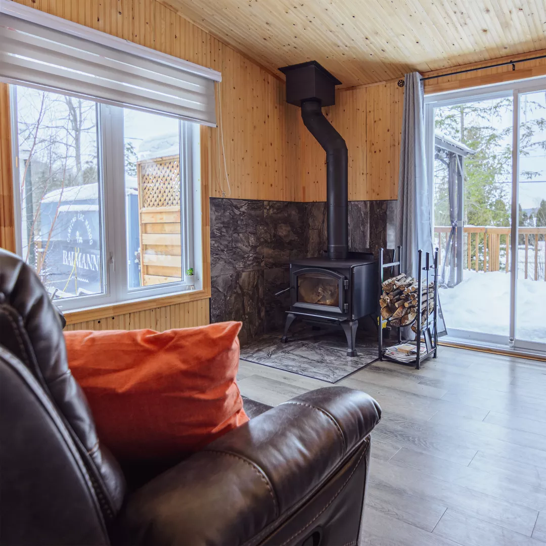 Profitez des magnifiques couchers de soleil sur le mont Orford à partir du quai, ou réchauffez-vous au bord de son foyer après une journée de plein air.